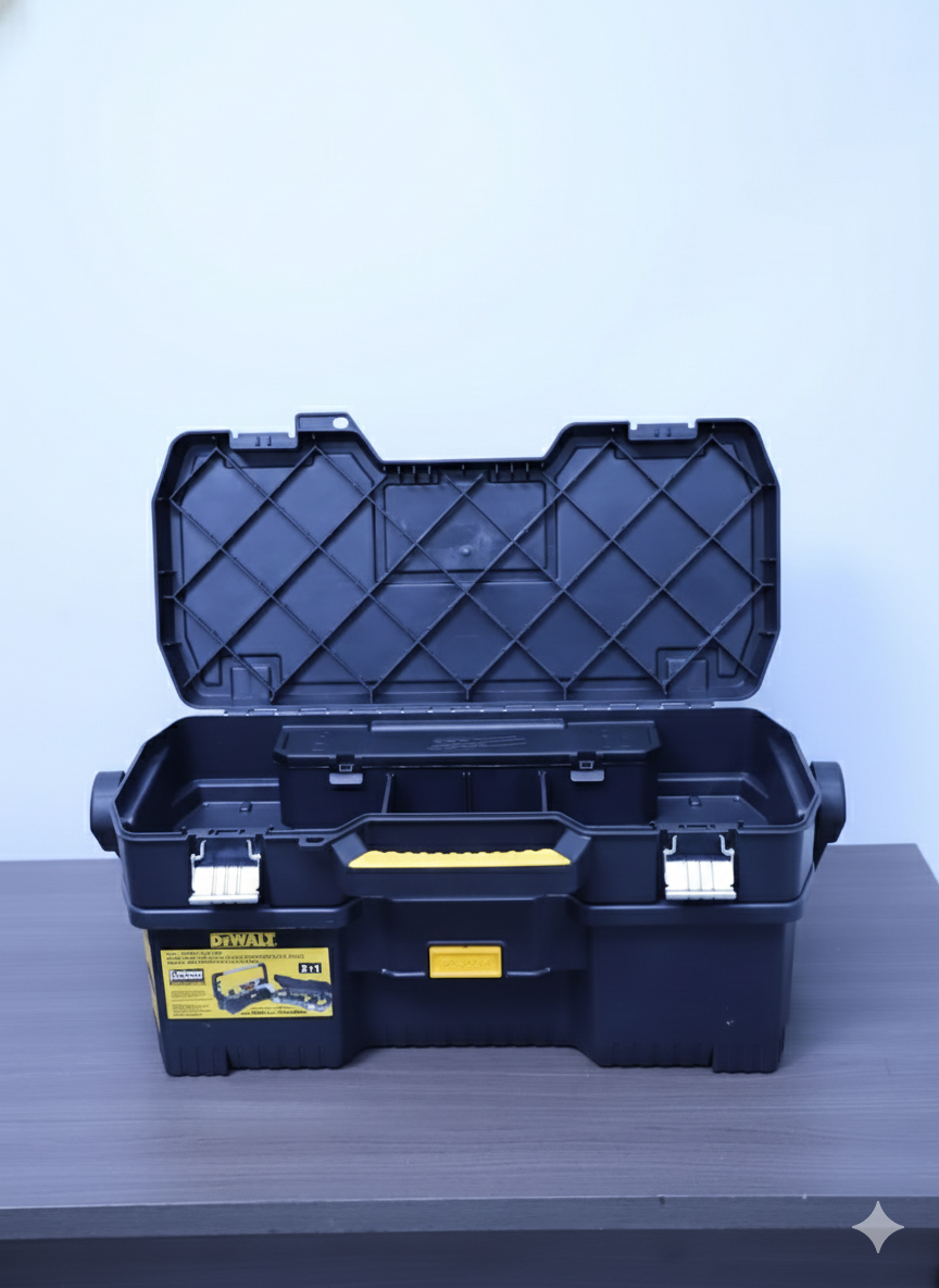 A Caixa com Estojo para Ferramentas Elétricas 24″ Dewalt DWST24070 foi desenvolvida para oferecer organização eficiente, resistência estrutural e praticidade no transporte de ferramentas elétricas e peças pequenas. Seu estojo superior integrado, com alça própria, permite acesso rápido aos itens mais utilizados, mantendo tudo organizado e seguro.