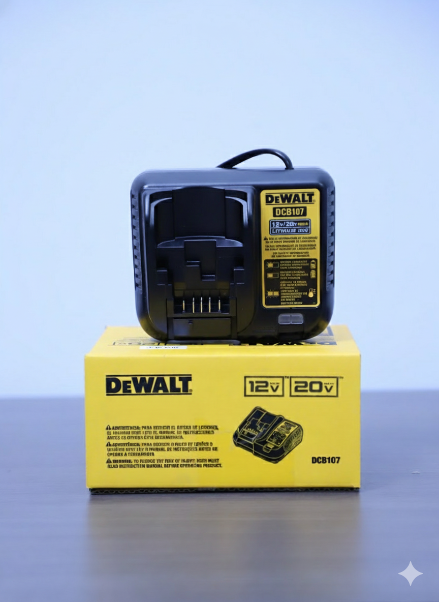 O Carregador Dewalt DCB107-BR foi desenvolvido para oferecer versatilidade, segurança e eficiência no carregamento de baterias de íons de lítio. Compatível com todas as baterias Dewalt 12V Max e 20V Max, é indicado para capacidades de até 2Ah, podendo também carregar baterias de maior amperagem, com ajuste automático do tempo de carga.