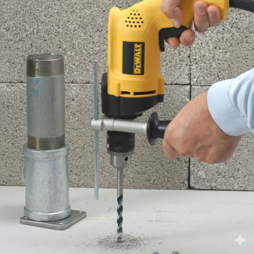 Perfuração em alvenaria, concreto e superfícies duras.