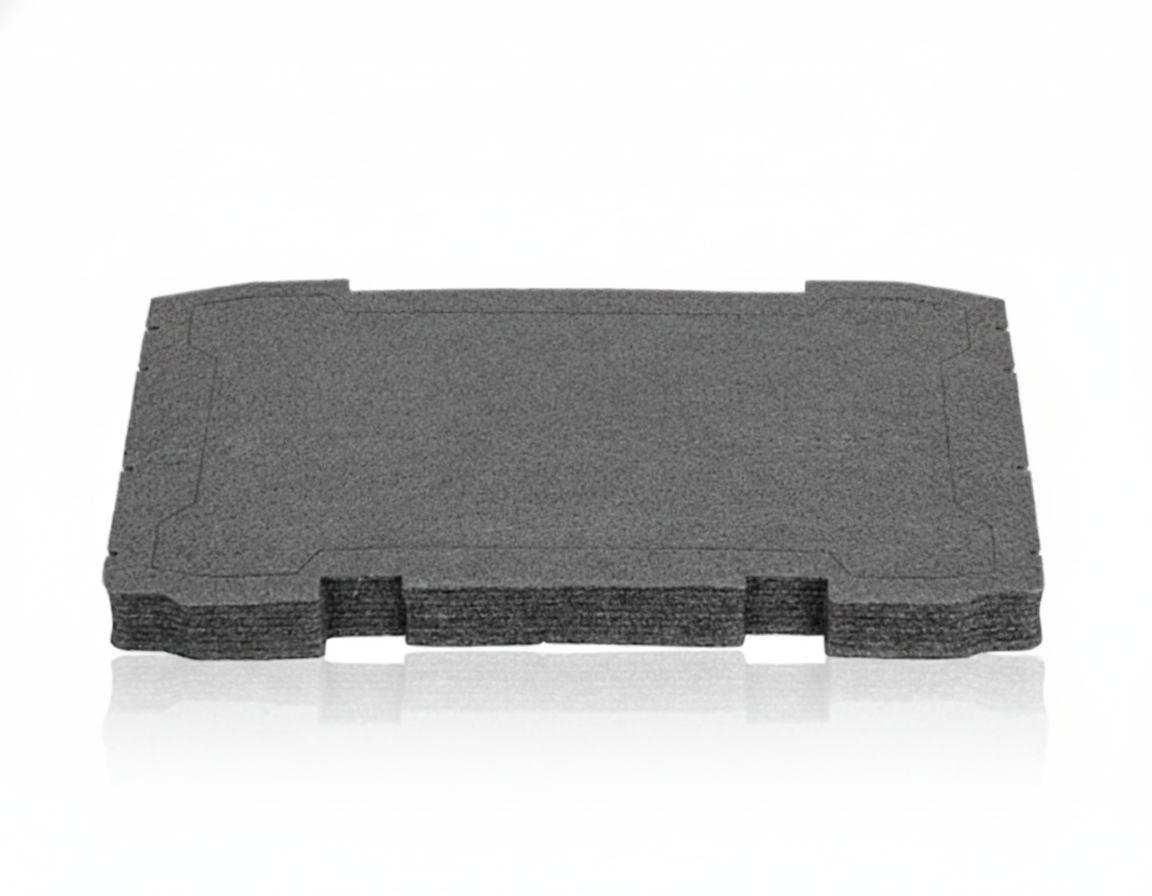 Inserto em espuma em camadas que permite criar um arranjo personalizado de ferramentas, adaptando o espaço às suas necessidades.