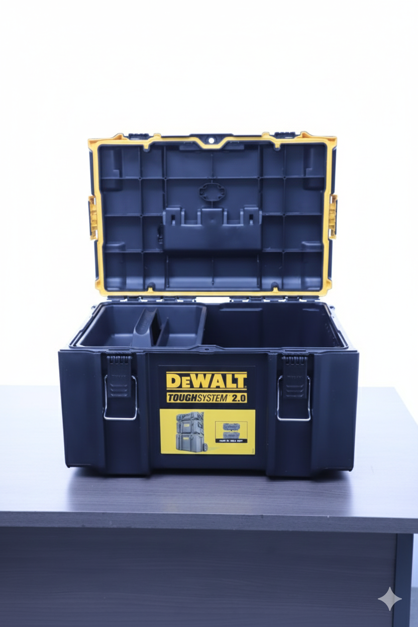 O Organizador Grande ToughSystem® 2.0 DEWALT DWST08300 foi desenvolvido para profissionais que exigem alta capacidade de armazenamento, resistência extrema e praticidade no canteiro de obras. Projetado para operação rápida, conta com travas laterais de conexão automática patenteadas, permitindo empilhamento e liberação com apenas uma mão.