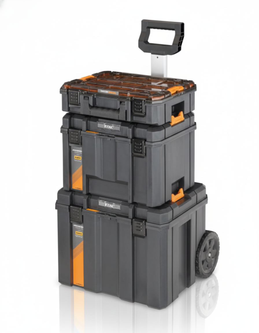 Armazenamento profissional completo com máxima resistência e mobilidade.